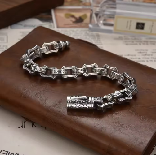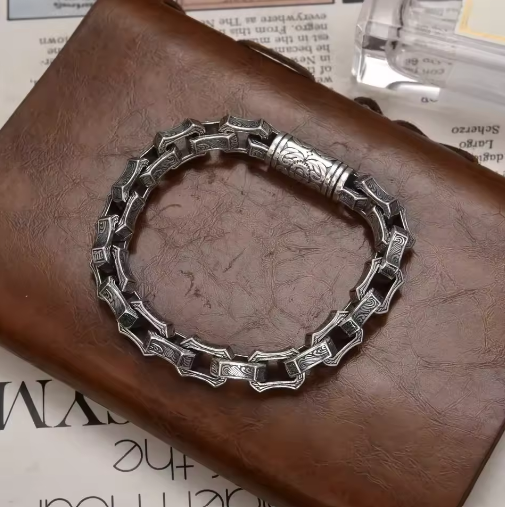 Inspired by the raw beauty of the North, this Nordic bracelet carries the spirit of ancient fjords, frozen forests, and storm-lit skies. Crafted with timeless detailing, it symbolizes strength, resilience, and quiet power — a reminder that even in the harshest winters, the fire within endures.